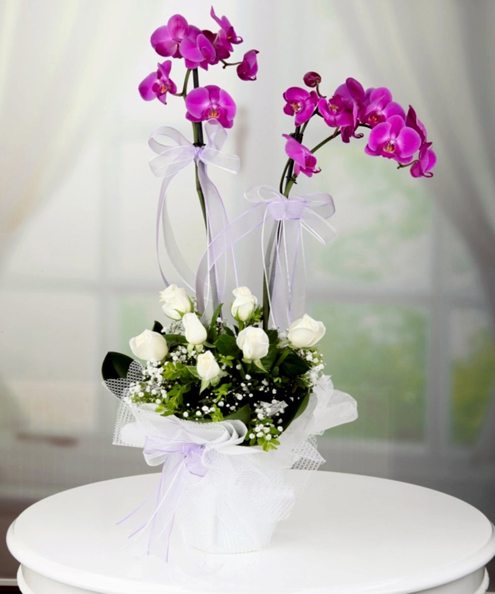 Orkideler, kategorisine ait İkili Mor Orkide Beyaz Güller özel günlerinizi sadece 494.42 ₺ fiyatı ile unutulmaz kılın.